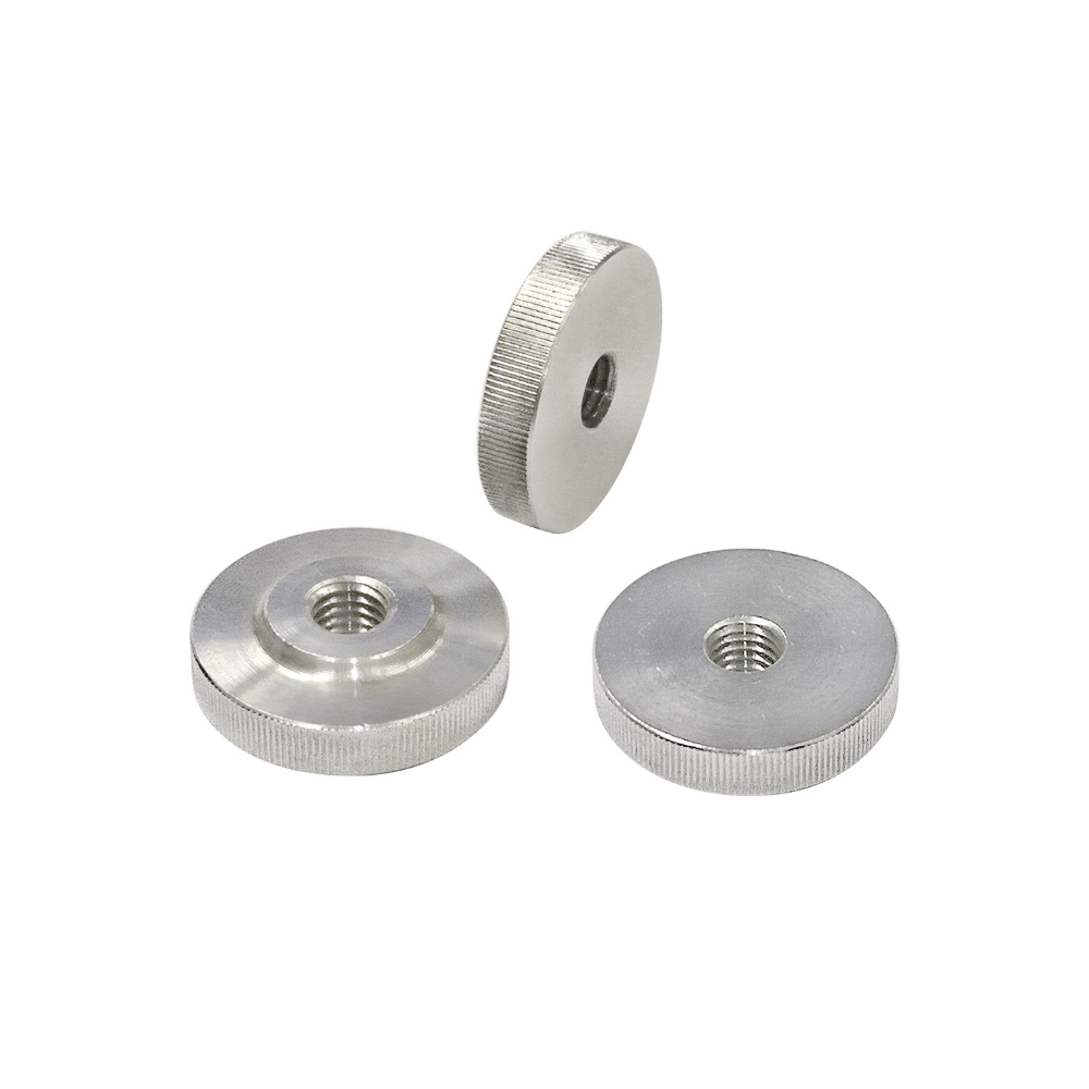 Ghiera cilindrica zigrinata con colletto alto, Aisi 303/A1 DIN 466